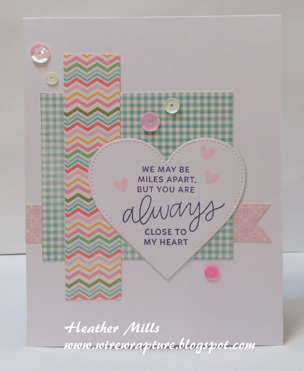 This is the 4th Valentine's Day card I was able to make yesterday and I was definitely in a pink and turquoise mood as all four of them use those colors. I guess it helps when you like the products that are on your desk; you just keep using them. This sentiment wasn't designed for Valentine's Day, but I think it is so sweet and absolutely perfect for sharing your love with someone who is far away.