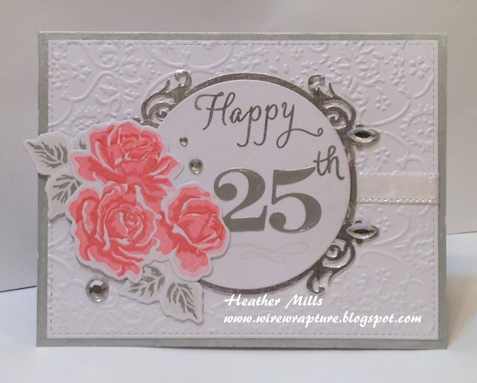 We have a 25th anniversary party to go to tomorrow--a couple in our family. I went with the traditional silver color and added a fun pop of pink with the roses.