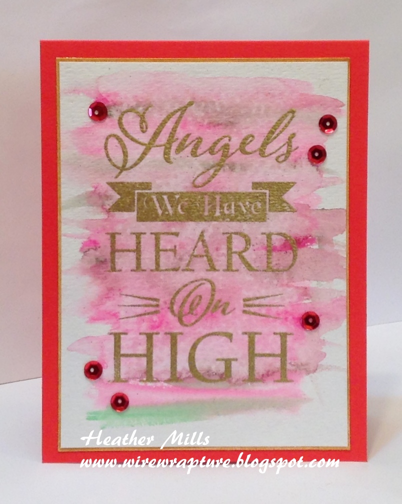 For this card, I used water color pens and water on water color paper. Then stamped the sentiment (several times using my mini MISTI) and added a few gold sequins to match the gold mat.
