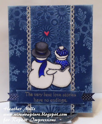 Fab anniversary card, Heather - just love the snow couple with the embossed panel of snowflakes!!