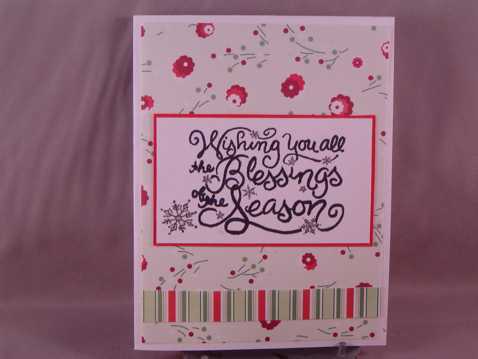 There are a lot of pictures in this post since I combined 3 challenges into this project, so hang in there. The three challenges are Verve's Triple Play--create three coordinating items or three cards/tags; Sweet Stop's sketch with a spin--decorate the inside of the card; and Our Daily Bread Designs--create a holiday card.