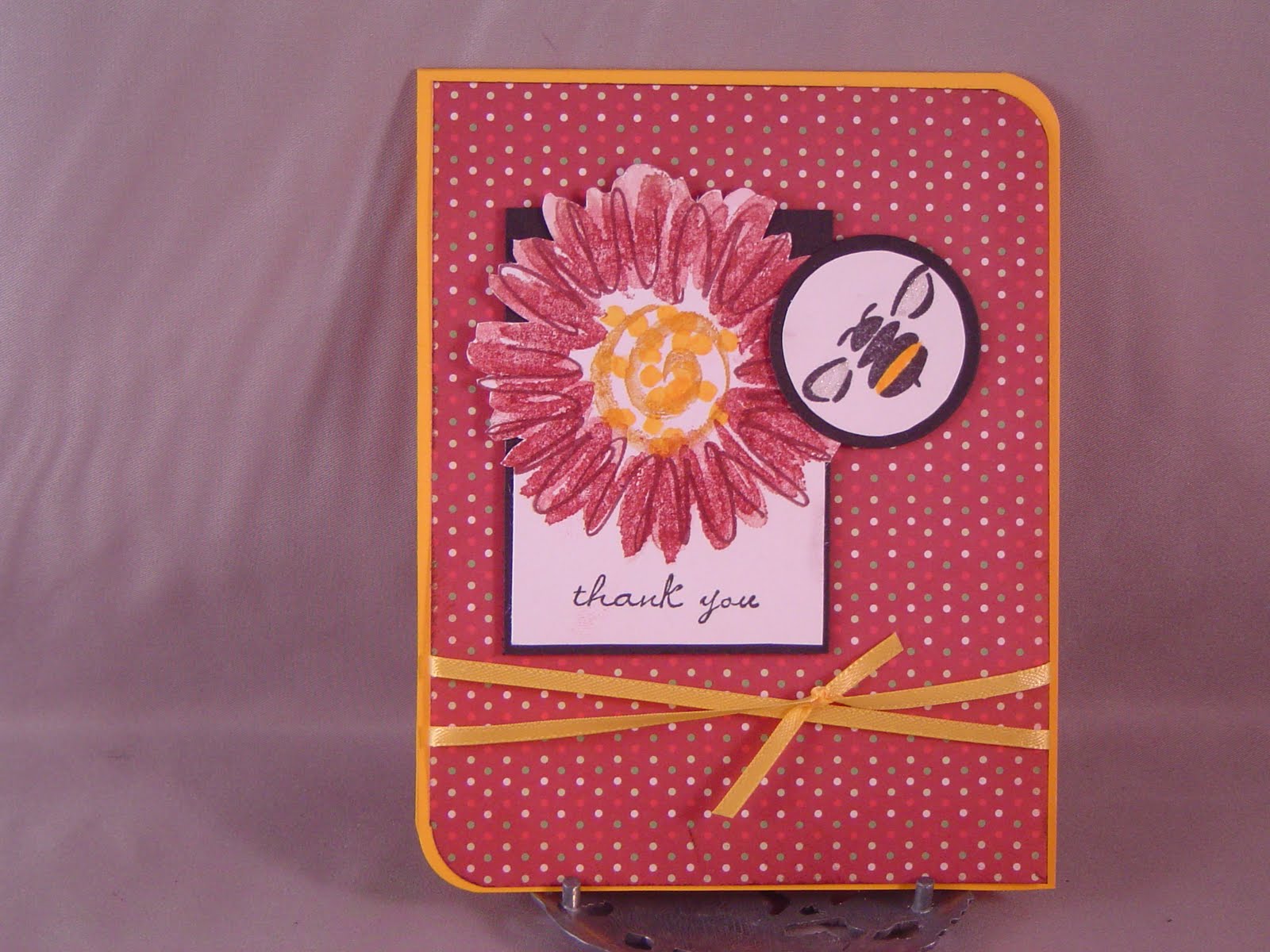Here is my card for this week's sweet stop sketch. My cousin just had her third little girl and I am going to send this to her. The stamp, pink cardstock and striped paper and from SU! yellow cardstock is from PTI. I created a little ruffled border with two layers of cs and the scalloped punch from SU!