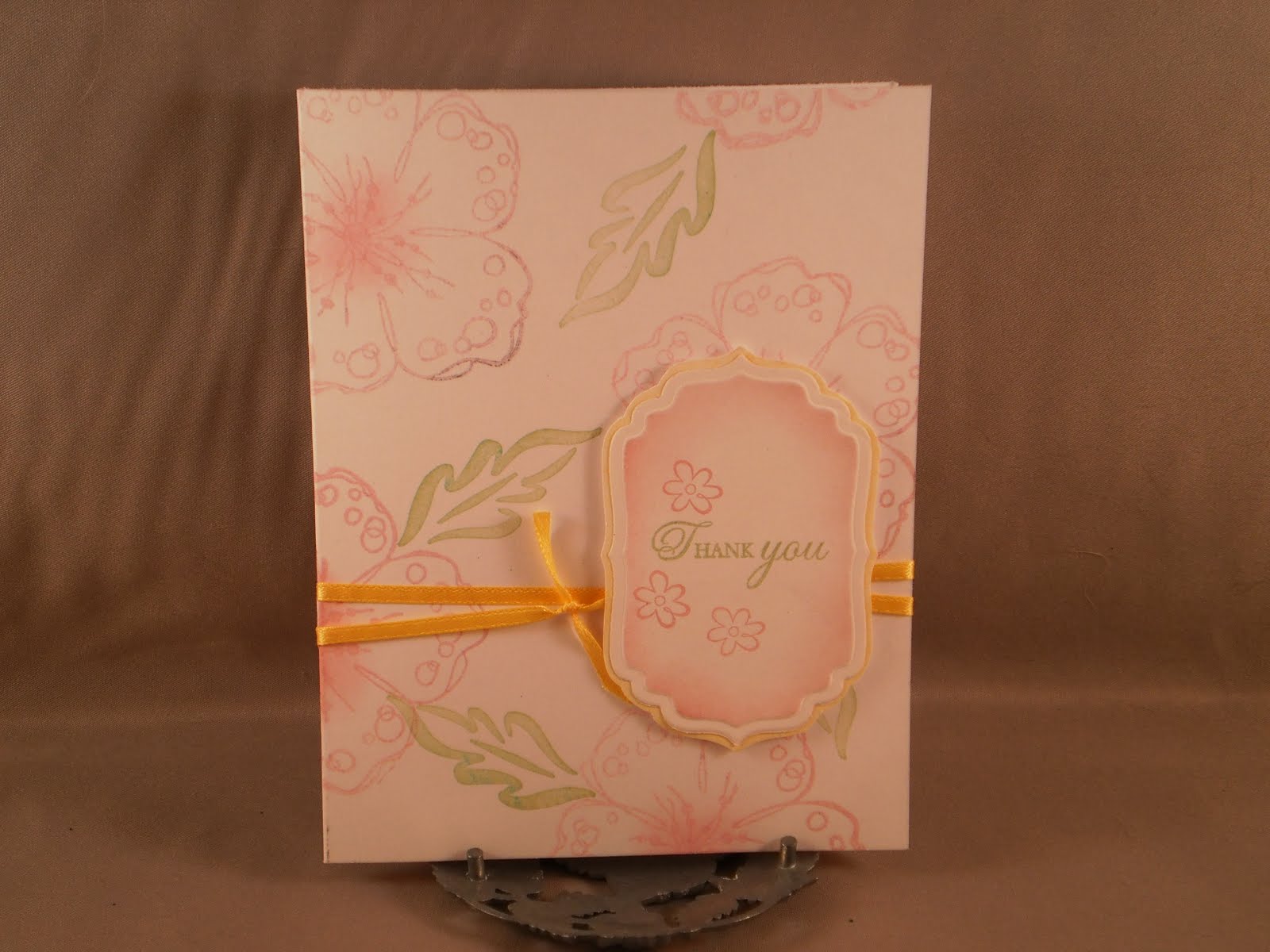 Today's card combines the Make it Monday Ink Blending challenge (from Papertrey Ink), the Off the Wall Craftiness color challenge of pink/yellow/green and the Cleary I Stamp challenge (from Clear Dollar Stamps) to make a CAS (clean and simple) card. The flower stamp is an awesome dollar stamp I got from JoAnn's that I am absolutely in love with!!! I have been using is a ton and you will probably see a lot more of it in the future. I added a leaf from an SU! set to add a little interest. The small flower is also from SU!, "Thank you" is from PTI (Through the Trees) and I used the labels four die from Spellbinders.