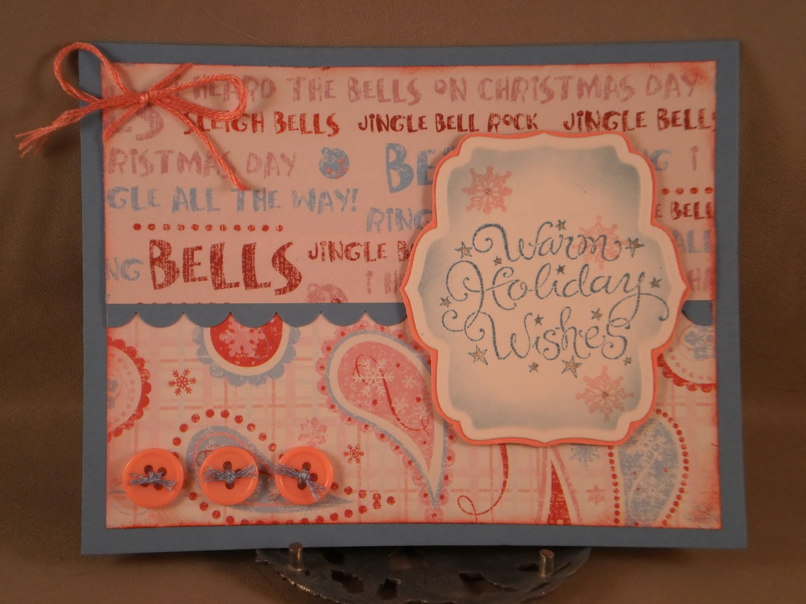 This is my first entry into a Skipping Stones Designs sketch challenge. I learned about them when Laurie Schmidlin became their guest designer. (She is one of the blogs I visit regularly). I love her work and decided to give the sketch a try. I used the buttons #1 die from PTI to make the buttons. Love that die!