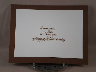 Today, my husband and I are celebrating our 12th wedding anniversary. Boy does the time fly by! I saw this sketch by the Pixie Cottage (sketch and/or embossing) and loved it since they had hearts for the brads and I thought that was perfect for an anniversary card. But, alas the only heart brads I had were pink and just did not fit with a masculine card. I went all Verve-y on this one: the little bear and the sentiment inside are from "To the Moon" and "love" is from "Text Objects". The "Happy Anniversary" on the inside is from PTI's "Damask Designs" one of my all-time favorite stamp sets!