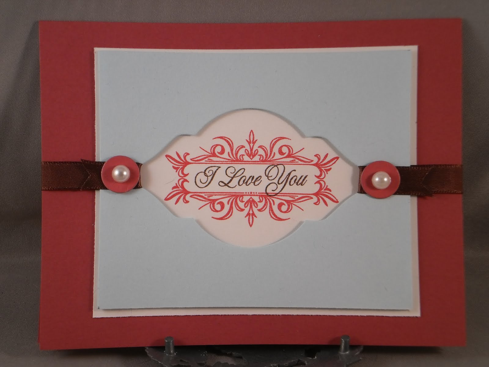Today starts the sneek peaks for Papertrey Ink's new release. As part of their 5th anniversary festivities today's challenge is to create a project based on one of the 5 sketches they have provided. I chose sketch #4 and had something completely different in mind when I chose it. : ) I used my new favorite color combo (at least for Valentine's Day): dark pink, light blue and brown. I die cut PTI's Mat Stack 2 from the center of my blue layer and stamped an image from the Mat Stack 2 set in the center, then stamped the sentiment (from PTI's Damask Designs). I also used PTI's button die to cut the two "buttons" that I topped with pearls.Thursday, February 9, 2012