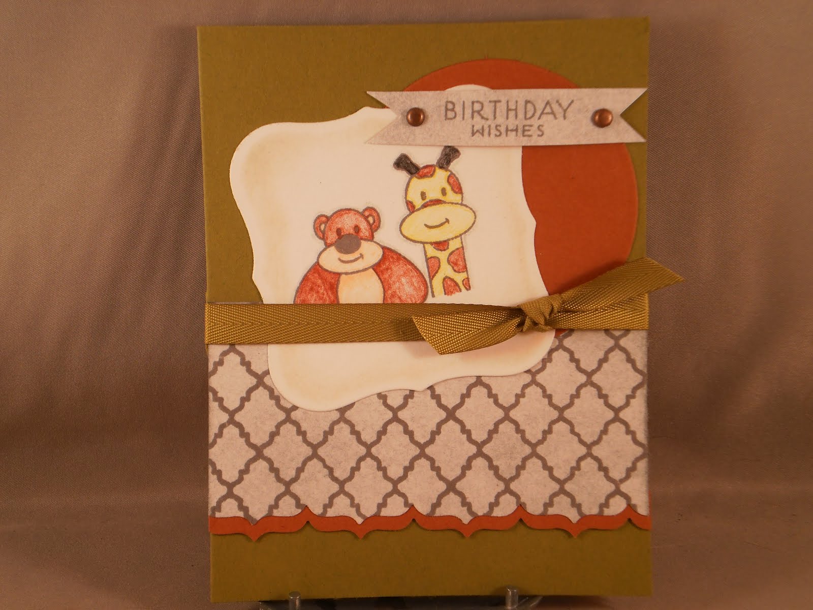 It's an almost completely Papertrey Ink card (I just realized): ripe avacado cardstock and ribbon; By the Numbers die and Big Birthday Wishes stamp set. The patterned paper is DCWV.
