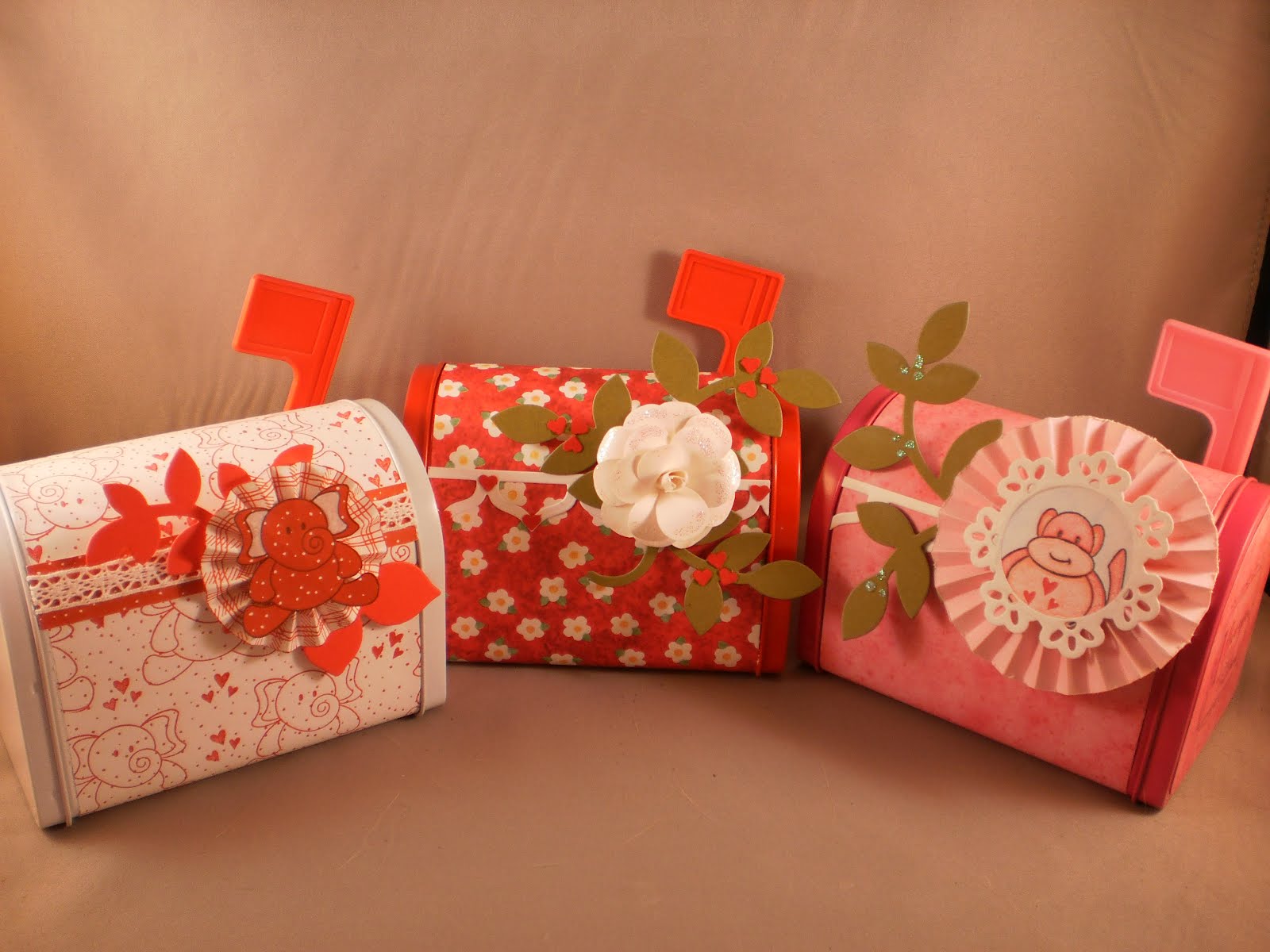 The next picture shows the mailbox I created for my middle daughter. Her fav. color is pink and she has a stuffed monkey that is her constant companion. Isn't this little pink guy cute? He is from Verve's "To the Moon" set.