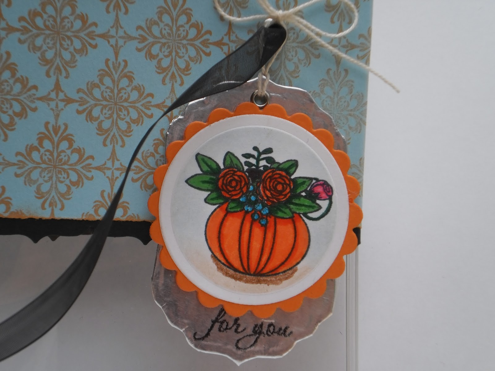 Supplies: DCWV paper; Clear Dollar Stamps "Elegant Flourishes"; Verve "Tall Oaks" pumpkins and sentiment