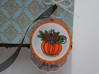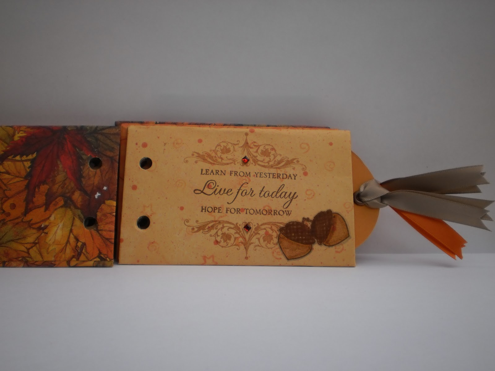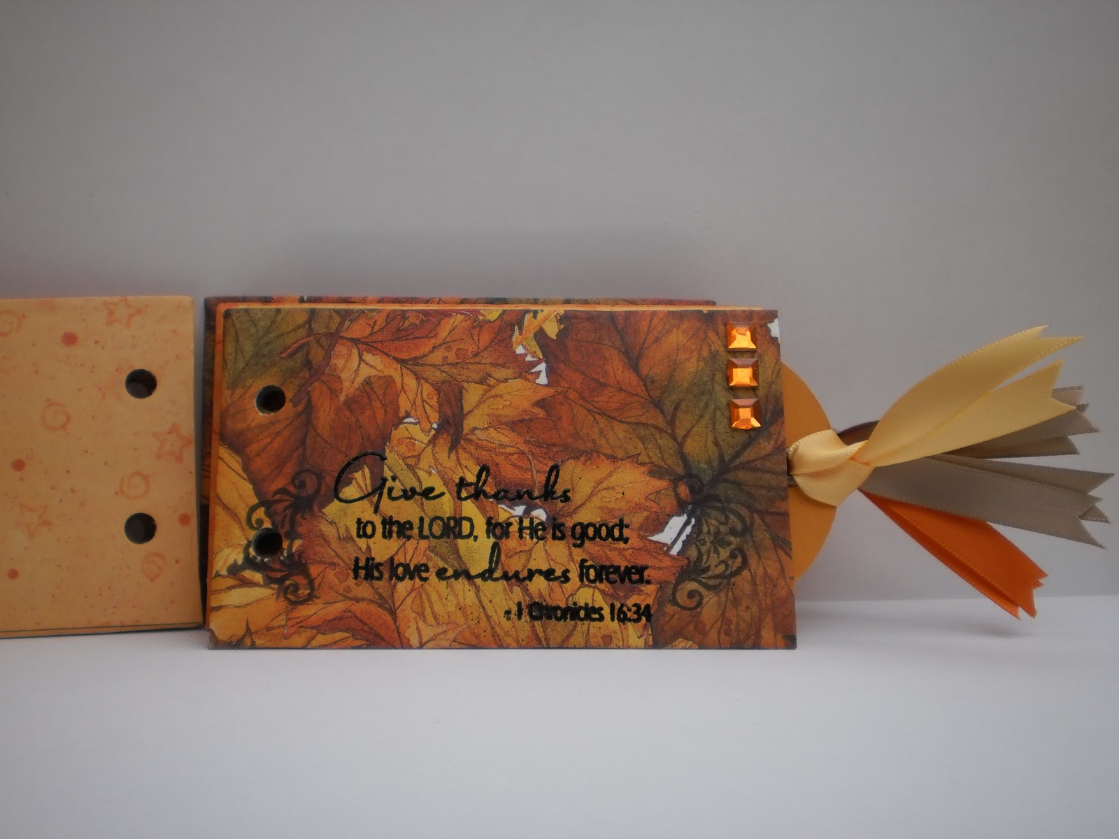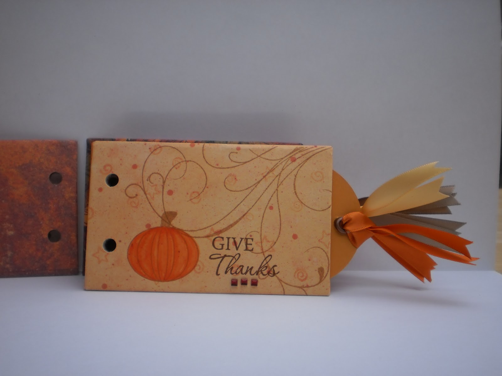 Don't you just love this time of year!? I love leaves and pumpkins and the warm fall colors. So there are lots of all of those things in this post. Lots of pictures because there are a lot of components to this project.And I love that both the {Pin}spirational challenge and the JUGS challenge are these gorgeous inspiration photos. My project is something I haven't ever done before. I have recently seen a couple of these little tag books made out of toilet paper rolls and thought they were really cute. Well, yesterday, we had a ladies craft time at my church and we made these little tag books. Mostly, we just learned how to make the "pages" out of the rolls and cover them with paper. Some people embellished theirs with a few embellies that were there, but I had a plan in mind and hadn't brought all my "toys" along. So, I came home and played some more and this is the result: