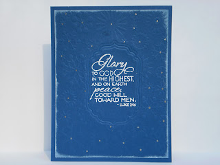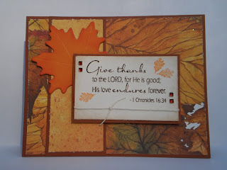 Supplies: DCWV paper; Verve "I Chronicles 16:34" plain jane; black embossing powder; PTI "Mat Stack 2" flourish set on each side of the verse.