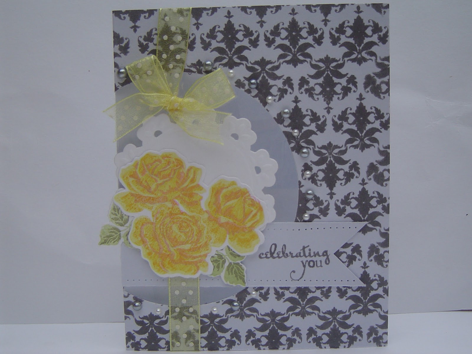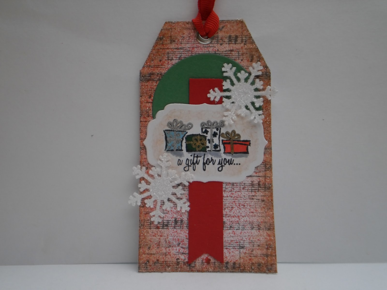Supplies (tags): Clear Dollar Stamps "Elegant Flourishes"; Verve "So happy"; the tags were cut out using a cricut machine the woman leading the craft time brought with her.