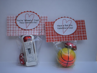 These are for the boys: the car (with the greeting: You're 'Wheel-y' Cool!) is for the one lone boy in the craft class (we didn't think he would appreciate a bracelet) and the boys in the storyhour class all got bouncy balls and a chocolate.