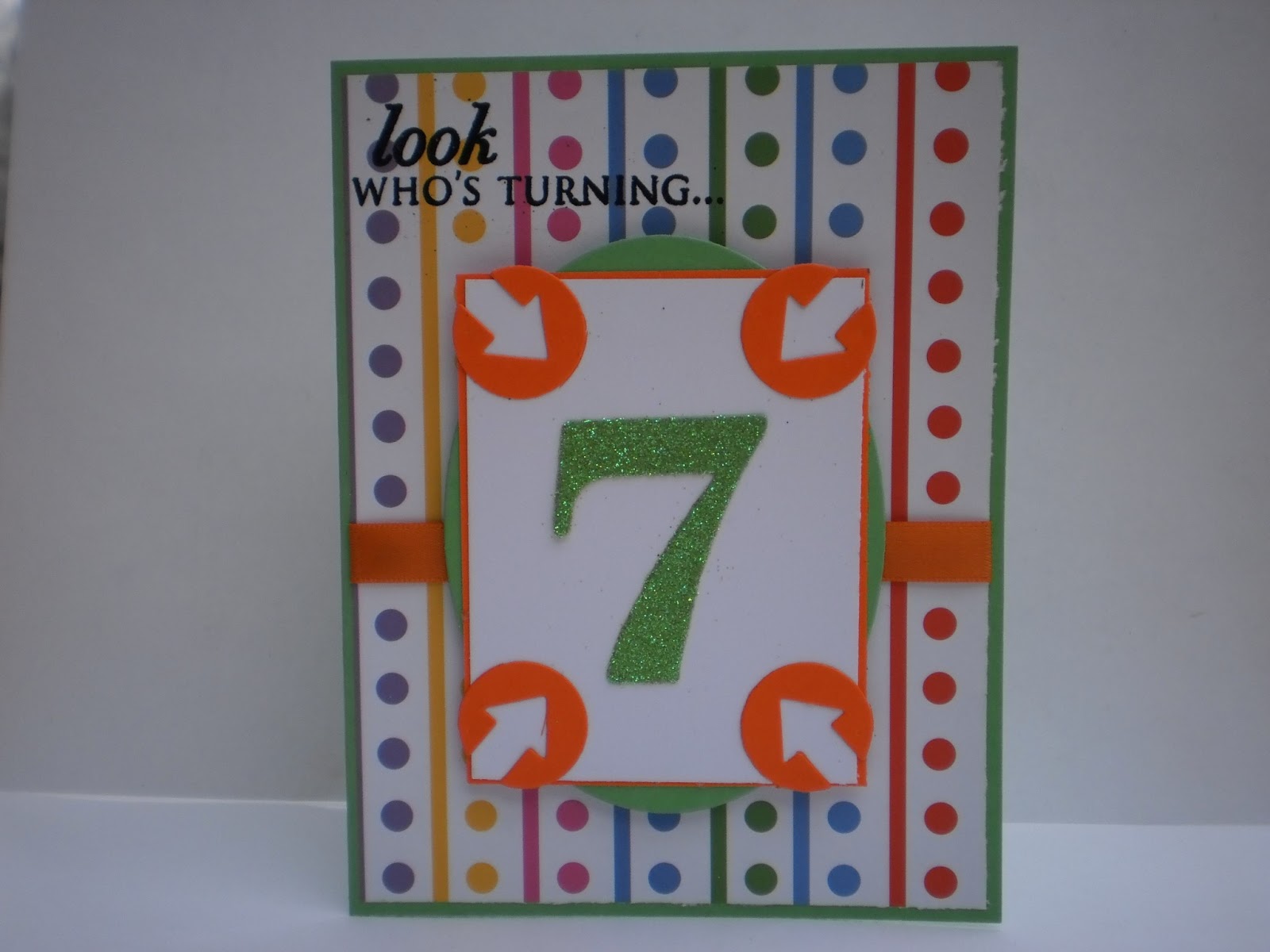 This dotted paper kind of reminded me of balloons or party confetti and was, therefore, the basis for the card. Obviously, I had to go with bright, celebratory colors and a big glittery seven.