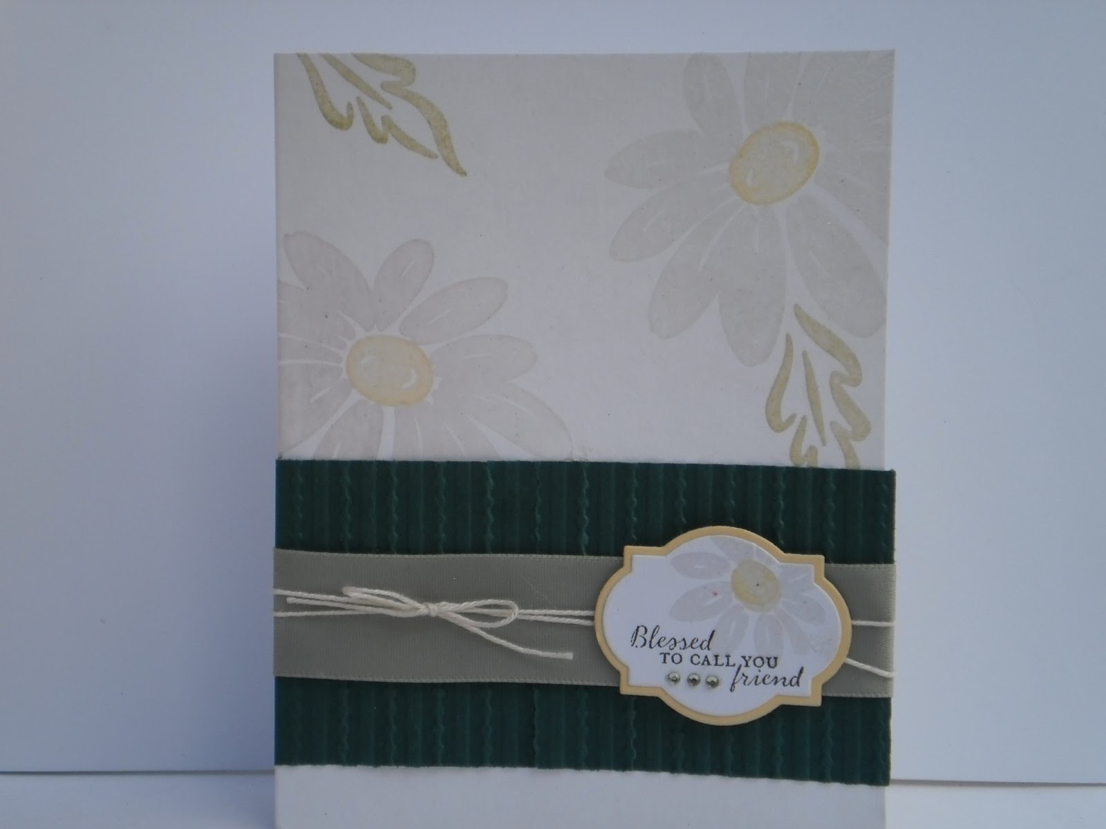 I wasn't sure that I could pull off daisies, but I went looking through my stamp collection and found this set from SU! "Decoratively Daisy" that I have had for a looooooong time. Then I had to think about how to use it, because daisies are white and white ink on white paper doesn't really show up very well. Recently, I had used white embossing powder on an image on white paper and it had been really elegant, so I figured I would give that a try, but of course, I couldn't find white embossing powder. All I could find was clear. So, I stamped the daisies with versamark and embossed it with clear powder and it was fabulous. Then I inked the center stamp with versamark and then a pale yellow ink and heat embossed that with clear powder. Also fabulous!! It needed just a touch more so I inked the leaf stamp in versamark and then a pale green and embossed that clear powder, too. If you ink with versamark and then your colored ink, it will stay wet long enough to hold the embossing powder and by using colored inks and clear embossing powder, you can emboss in any color you want. You don't have to have a million colors of embossing powder. There you go, tip for the day. : ) I used the same technique on my tag, but I stamped my sentiment first because you can't stamp OVER embossed images, it just wipes right off. And I let the sentiment dry for a while so the embossing powder wouldn't stick to it, though in hindsight, it's just clear powder so it wouldn't have changed the sentiment any. My stripes are a new embossing folder I just got last weekend. So, there you have Daisies and stripes. Now, hop on over to The Lollipop Ladies blog for all the details and play along. I'd love to see your take on the challenge.