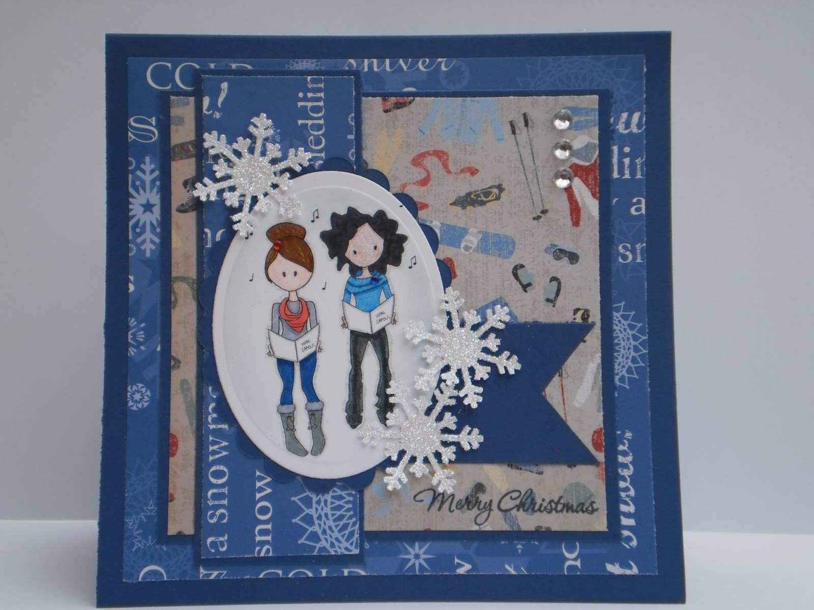 Delightful Challenges--3's a charm (use three of anything--I have 3 snowflakes, and three clear rhinestones)