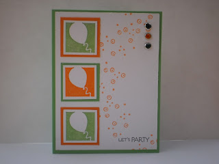 Still working on birthday invitations. Actually I sent them out, just hadn't had a chance to post them yet. this is a nice and easy one. Just a rainbow of balloons with a few scored lines with a glittered strip in the center.