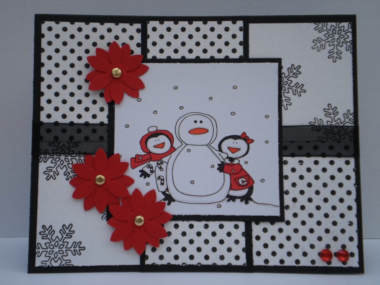 Stamps: Dearie Dolls penguin digi; Verve "Merry and Bright" snowflakes