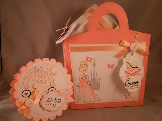 Ok, so this post has a lot of pictures and a lot of blah, blah, blah so I posted the picture of the final product first so that you can just look at that and move on, if that's what you want to do. But you can keep reading if you're interested. The little circle card I already posted and you can find it here. My best friend's birthday is the 12th and I made this card for her. Then to package up her gift (don't judge, we don't go crazy, just a little something works) I decided to make something that coordinated with the card. Isn't it sweet?! I mentioned in the post for the card, that I needed to have a sentiment that said "Queen for a day" to go with my theme. As you can see on the tag, I now have one! Yeay!!! It was made for me by Mynnette Kitchen (as I had a card showcased on Technique Time Tuesdays challenge blog) and it is fabulous. She added the little crown and it is the perfect finishing touch! (Thanks Mynnette)