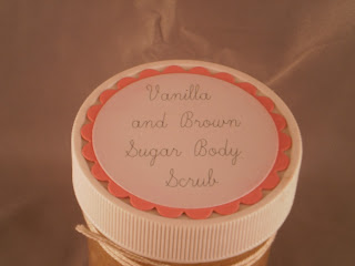 Then I made this super yummy body scrub. I changed the recipe a bit, I used 1/2 brown sugar and 1/2 epsom salts for the sugar part and I added a little bit of Vanilla extract for aroma. It smells awesome and looks just like cookie dough, but if you make it, don't eat it 'cause the epsom salts make it really bitter. I know . . . from experience. You could eat it, though cause everything is natural.