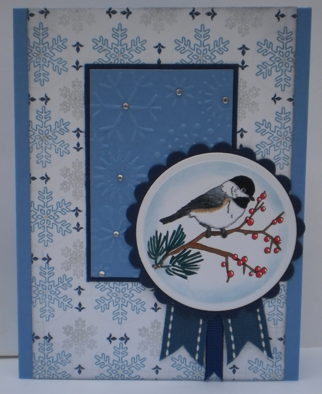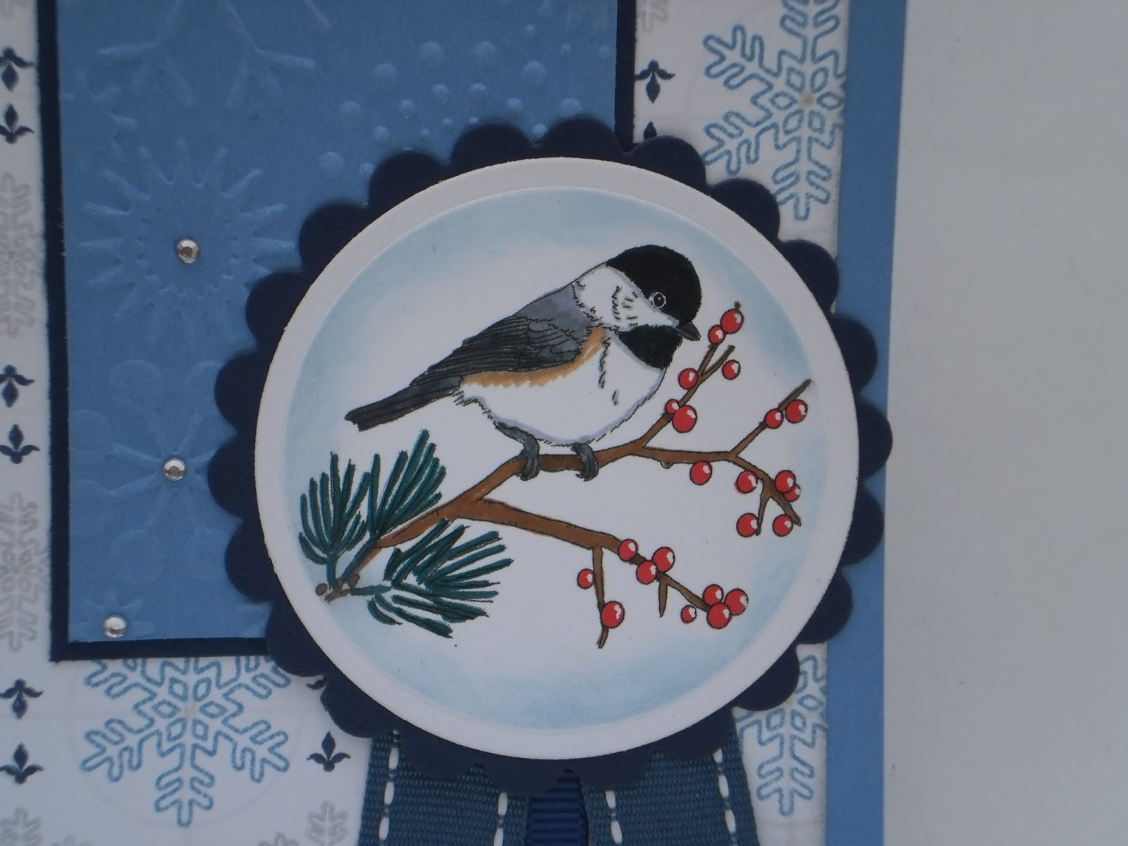 Dies/embossing folders: spellbinders scalloped circles and circles, large and scalloped tags; cuttlebug snowflake embossing folder