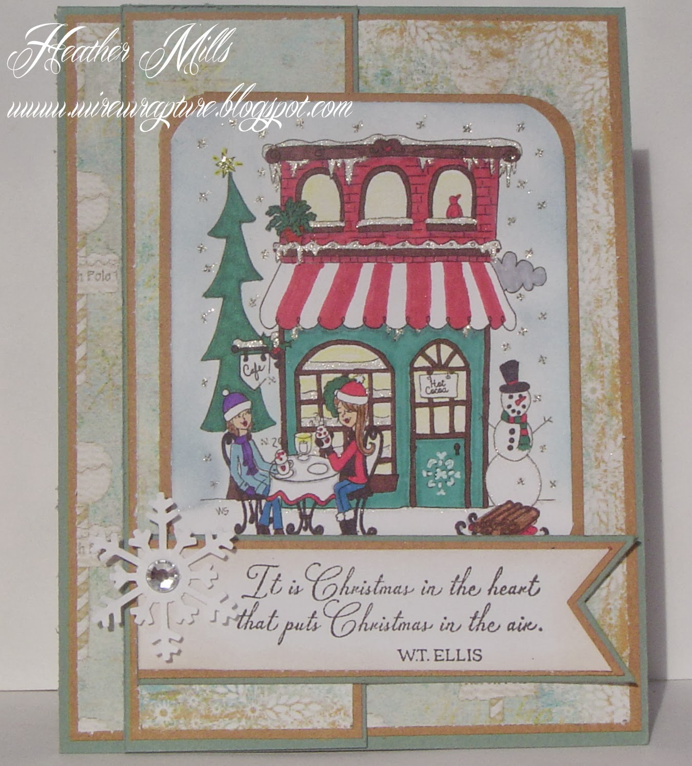 I really, really, really, love this paper from Bearly Mine, unfortunately, my design covered up most of it. This cafe scene is a freebie from Broken Box stock. Can you believe it's free!!?? See that little snowman on the right? I printed out a second image and cut out only the snowman and . . .