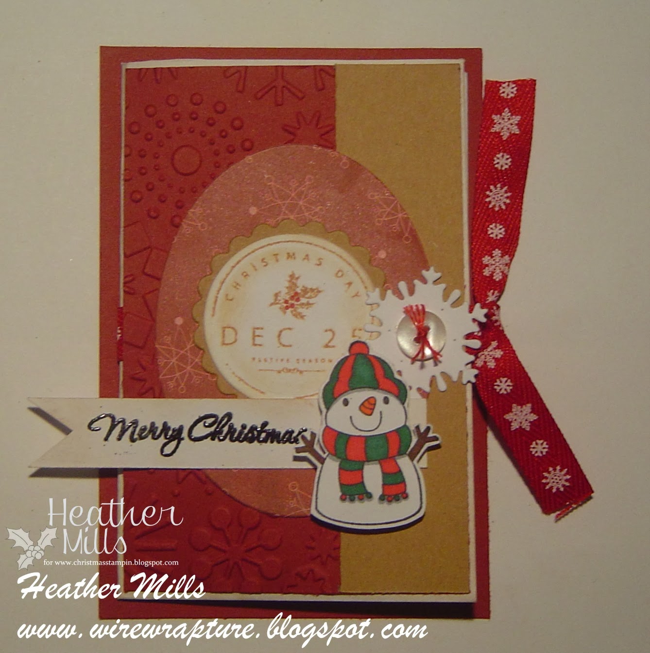 Wow! Friday again! Time for another challenge from Christmas Stampin' All Year Long: use ribbon and die cuts. Easy!!