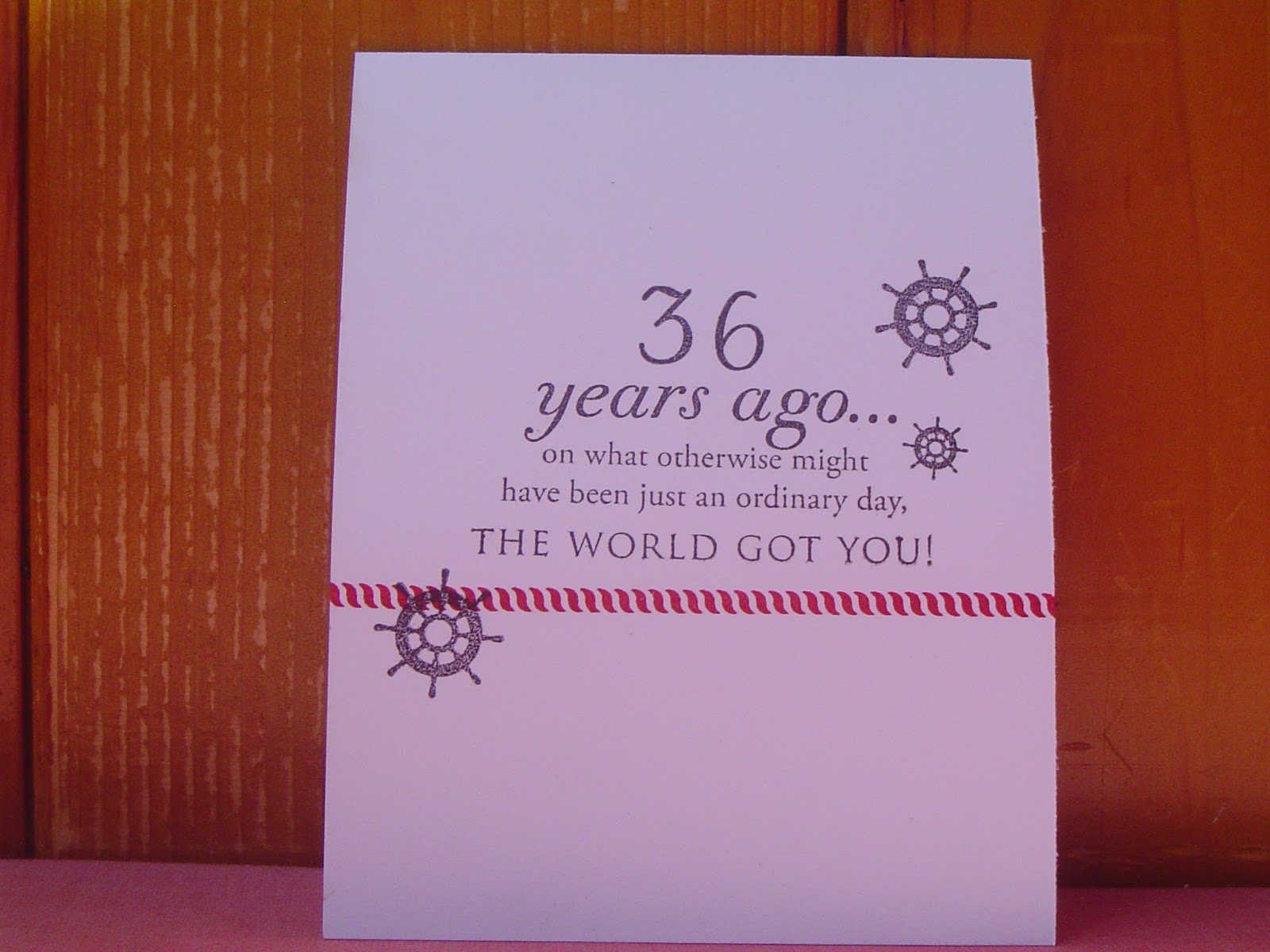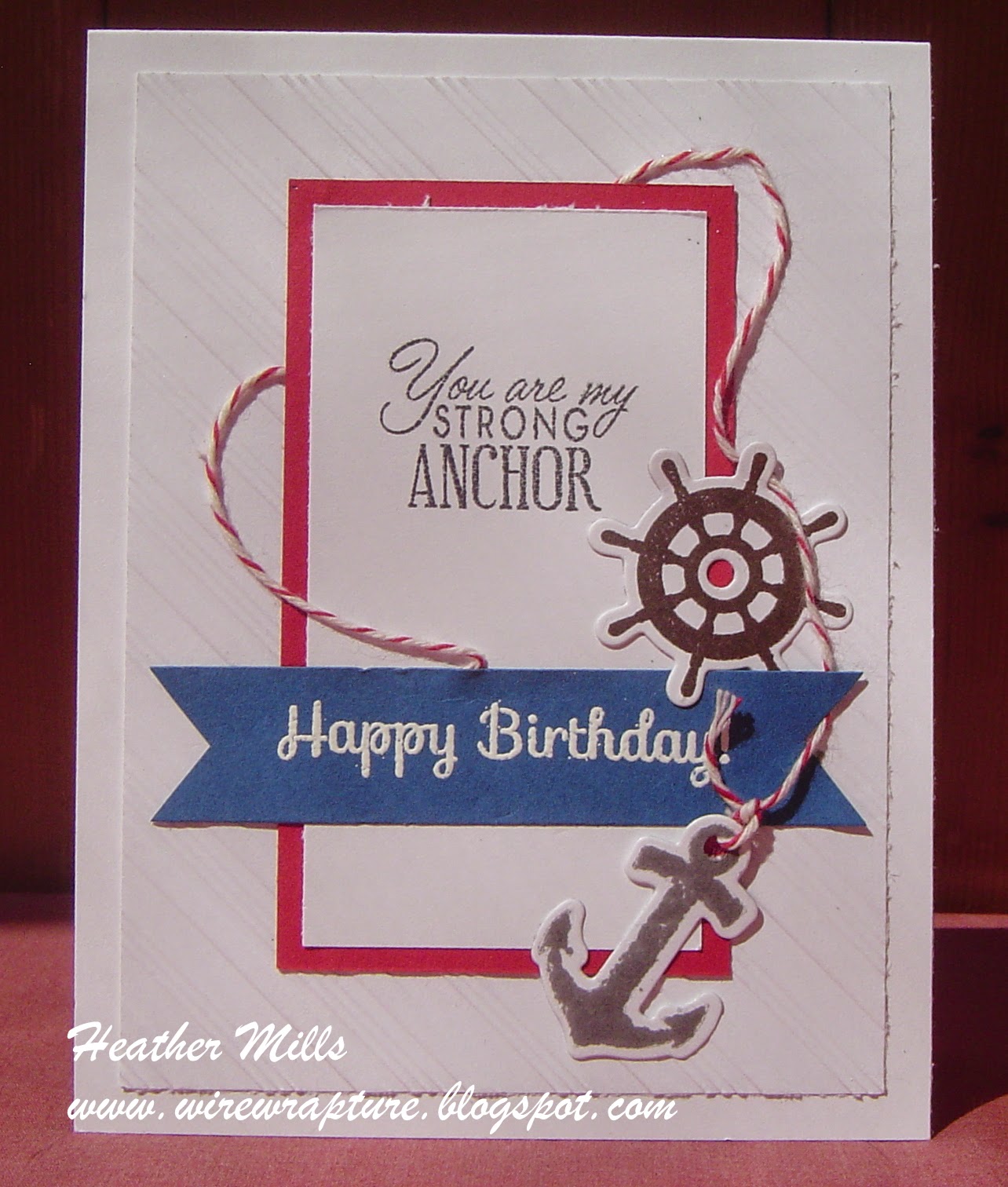 I made this card for my husband for his birthday. He definitely is my strong anchor and I knew this set from Verve was perfect for his birthday. Love it!! Don't you love the embossed diagonal stripes in the background?