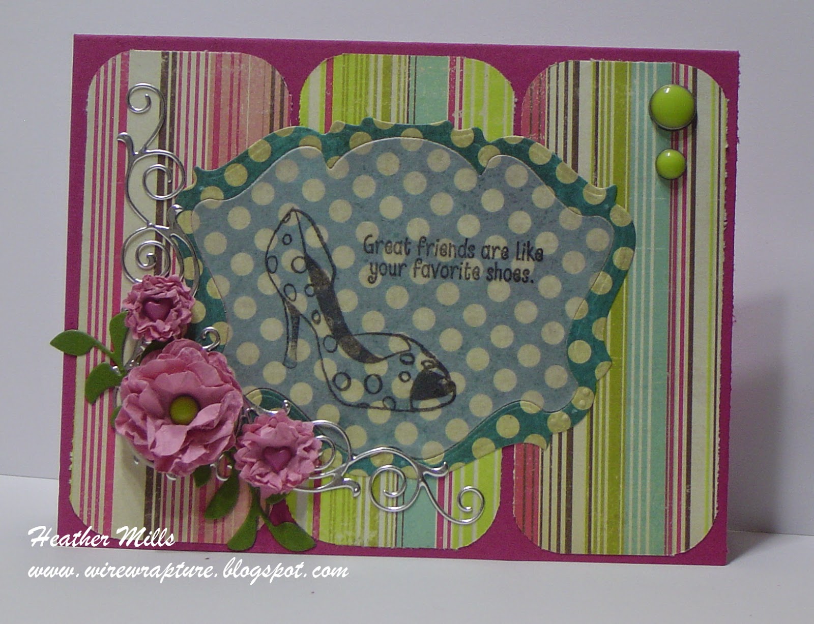 Oh, happy day! I think this is going to be a birthday card, but not quite sure yet. Whatever it ends up being, it's definitely happy! I started out by stamping the sentiment so I knew where to draw the lines. Then after penciling them in, I masked off the center portion with washi tape and stamped the musical background followed by the flowers and leaves. Remove the washi and redraw the lines with black marker, add the card candy and you have a quick and easy (and CAS) card that will make the recipient smile. Love how it turned out.
