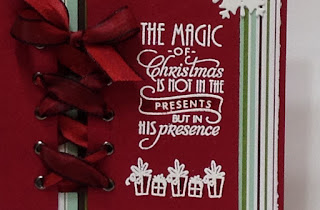 See those corner brackets in the bottom two corners. They are actually die cuts, but since I cut them out of the same color card stock as the main panel, they turned out looking like they were embossed instead. It is a great way to add interest to plain corners without taking away from the focal pointIf you have been playing along with us, then you already have a good head start on those Christmas cards. If not, well, it's time to start. It's so nice not to be scrambling to get cards finished in time to get them sent out. I know, because it's happened to me several times.