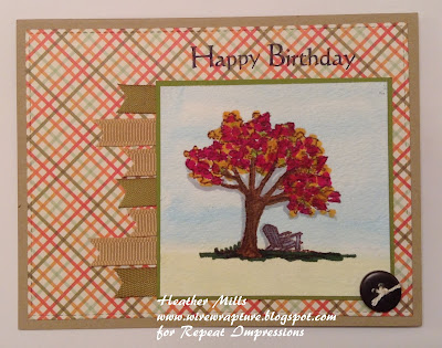 What a fabulous fall card, perfect choice as the leaves are beginning to turn-the ribbon and background paper are a perfect compliment to your lovely tree!