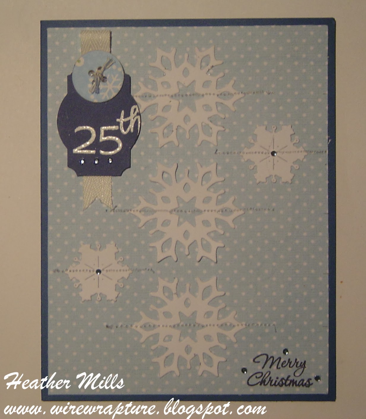 I just got these snowflake dies this week, so when I saw the VLV sketch for this week, I just had to pull them out an use them. But never fear, I also used two items from my bits and pieces stash: the blue tag and the button on top of it. If you want to see my stash, check out this post. I am going to try to take a picture each month to see how well I am doing at using it up.