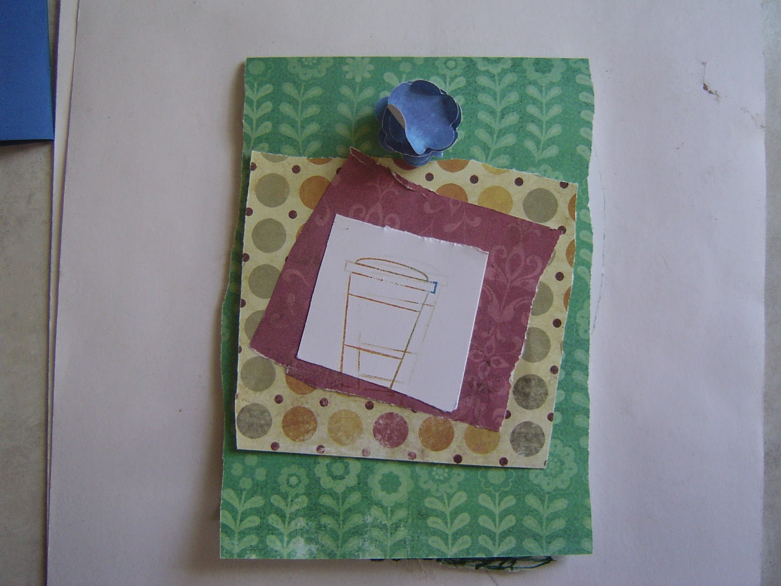 And I guess she decided it was such a success that she made a second one.  And look 3 different sheets of patterned paper (that I bought myself for Christmas by the way) mutilated, I mean, cut into.  But it is really cute, and she actually picked papers that went well together.  And you can't tell, but there are about 4 layers of flowers all popped up on pop dots.