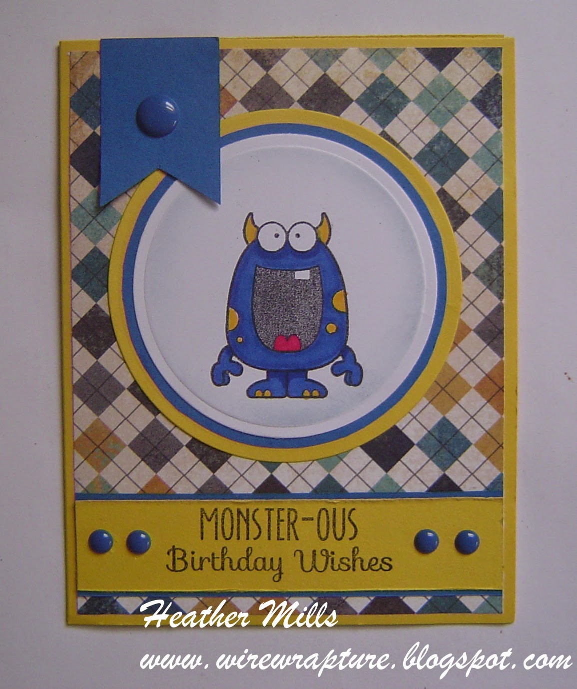 April is a big birthday month in my family.  So, it's time to make some birthday cards.  I got this stamp set from Your Next Stamp a month or so ago and just HAD to pull it out and play with it.  All the monsters just make me smile and the sentiments are all so fun.